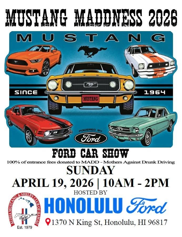 2026 FORD CAR SHOW. Sunday, April 19th, 2026 at Honolulu Ford. Click on the flier found towards your right for more information!