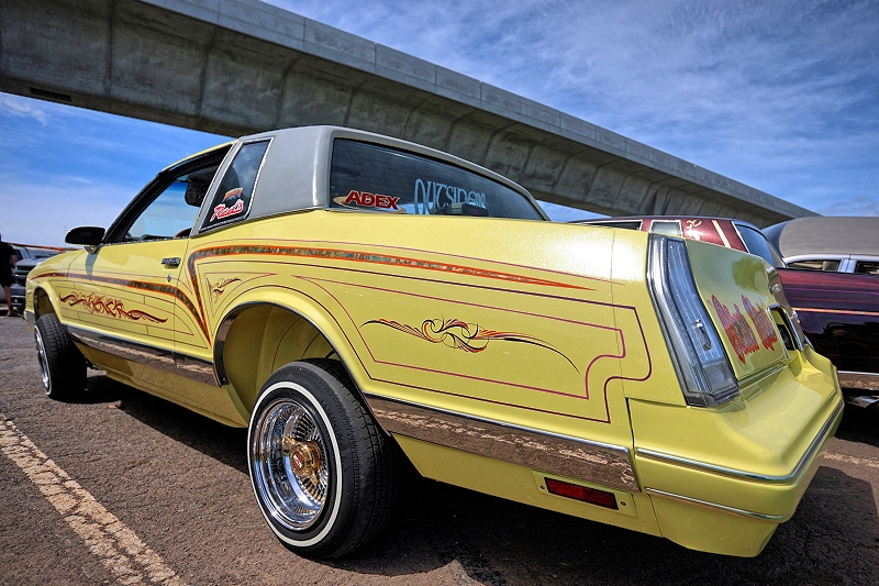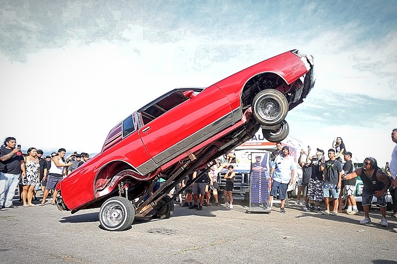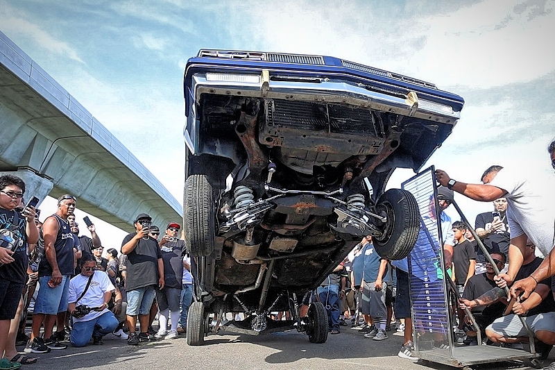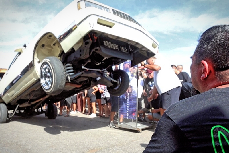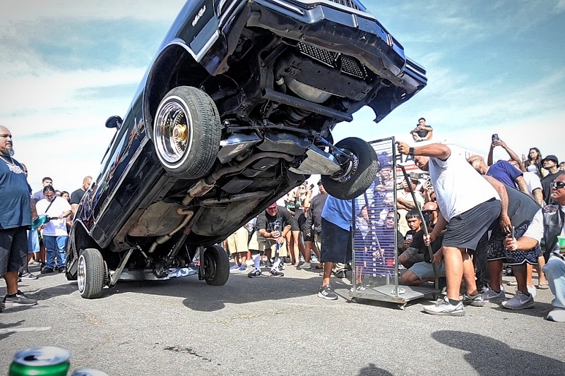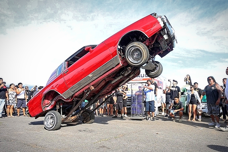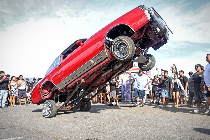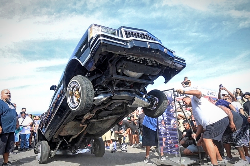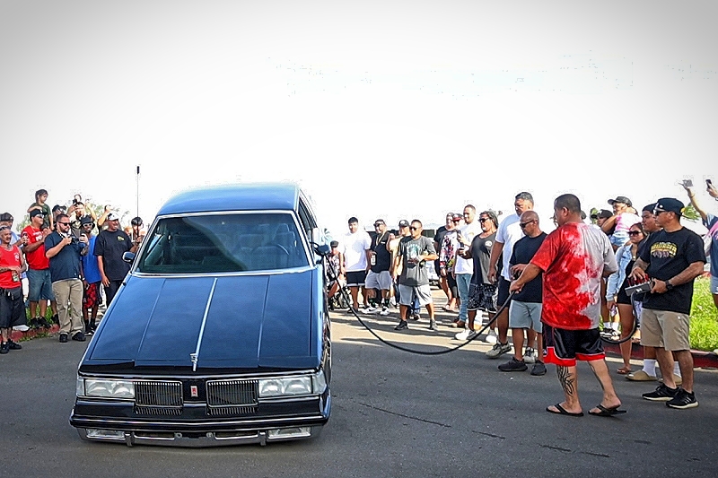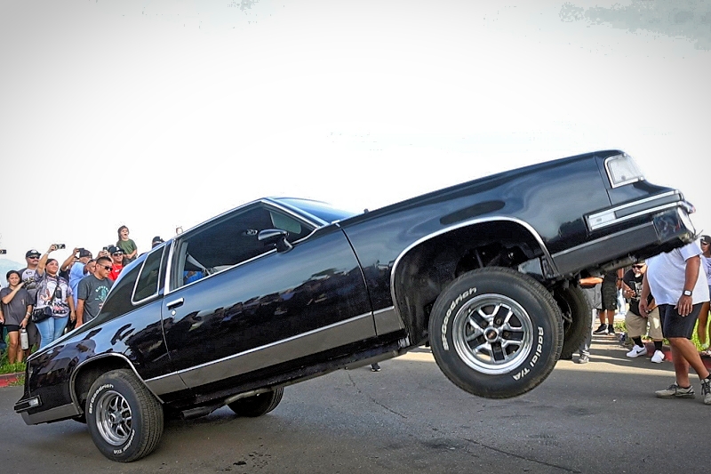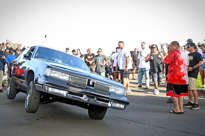 Willy Diaz’s 1979 Chevrolet Monte Carlo representing Outsiders Car Club hit a best of 42 inches at the stick at Supremacy Hawaii’s 27th Annual Food Drive and Show & Shine Street Hop