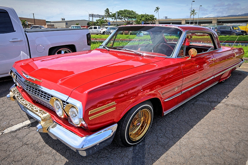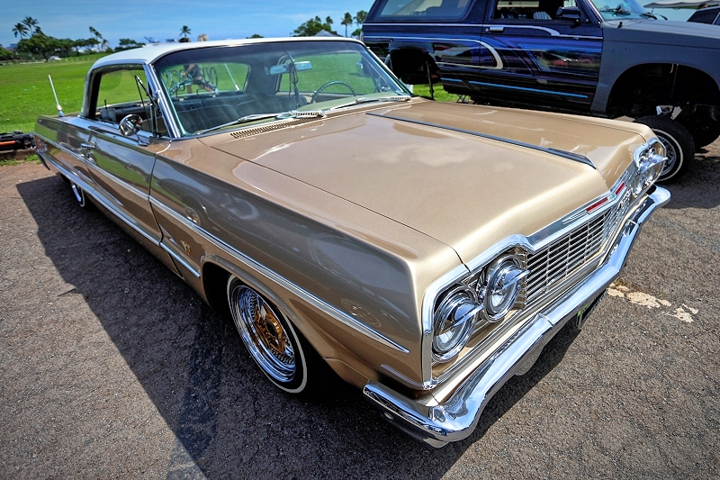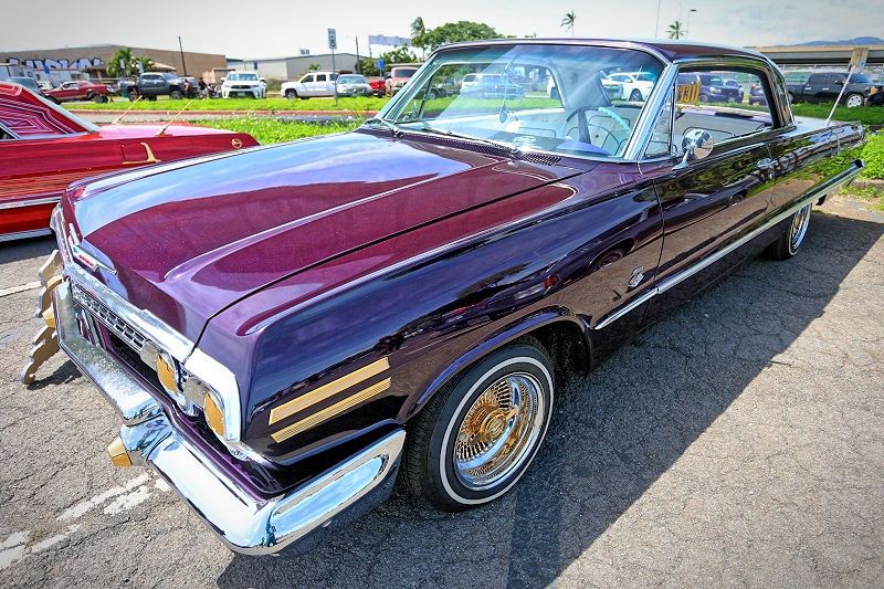 SMG Hawaii aka Sexii Munkii Garage, a powerhouse and dominant crew here in Hawaii Nei in regards to high horsepower, highly modified supercars, domestics, and imports came out and represented with a lowrider of their own that being a Chevrolet Impala as pictured above and below