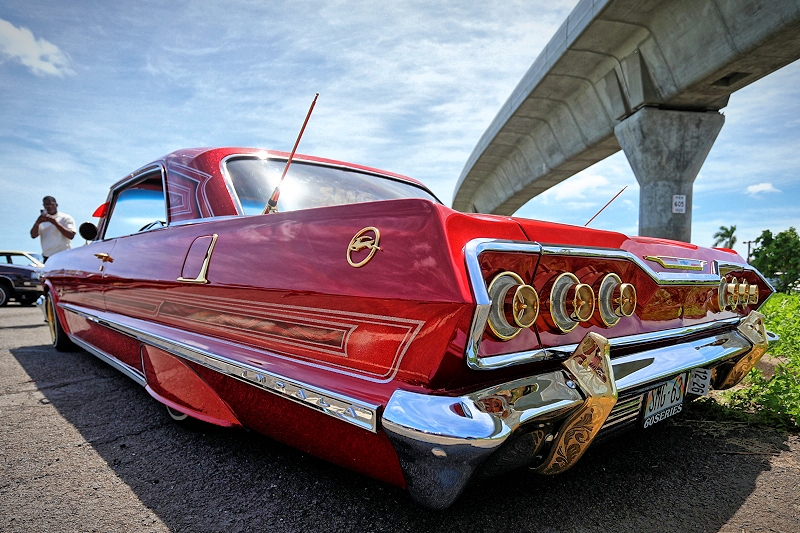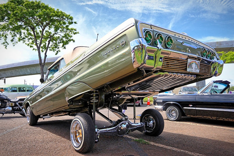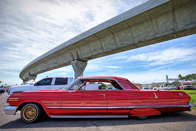 Outsiders Car Club’s “Bloody Bastard” hitting some major air much to the delight of both spectators and participants alike at Supremacy Hawaii’s 27th Annual Food Drive and Show & Shine Street Hop