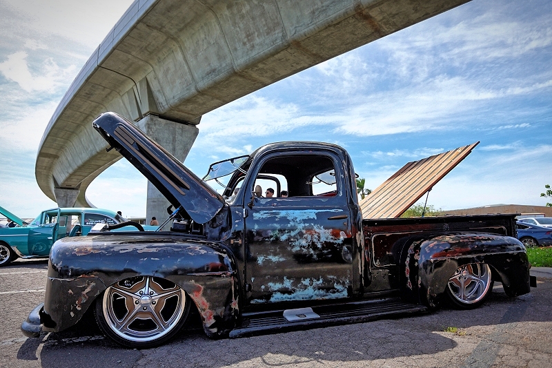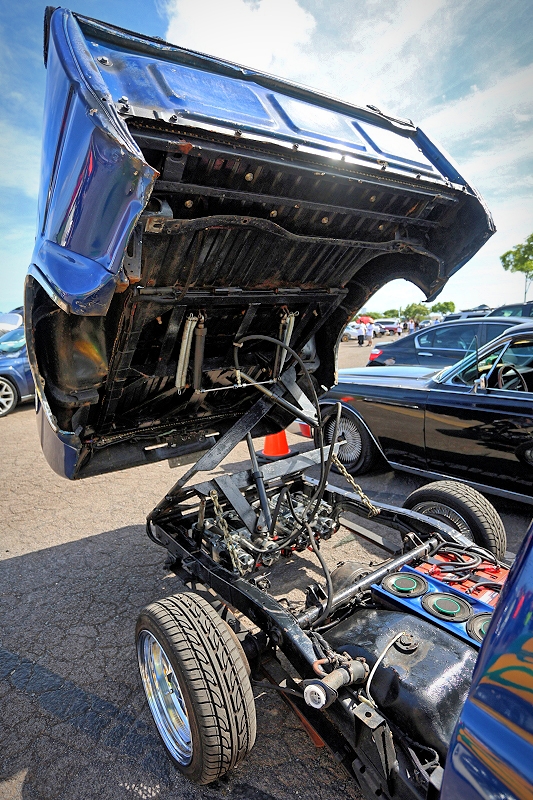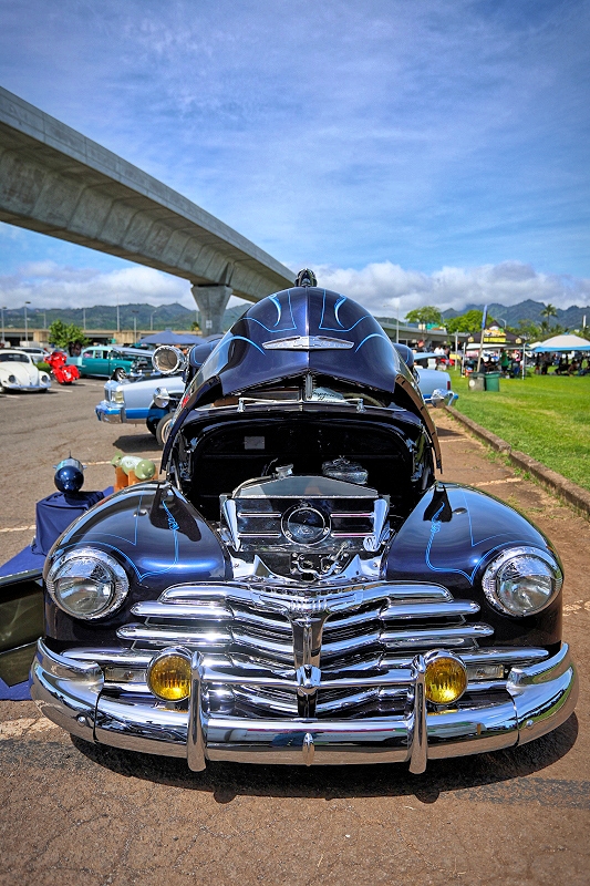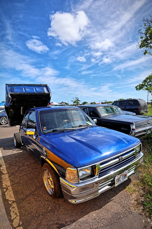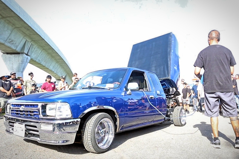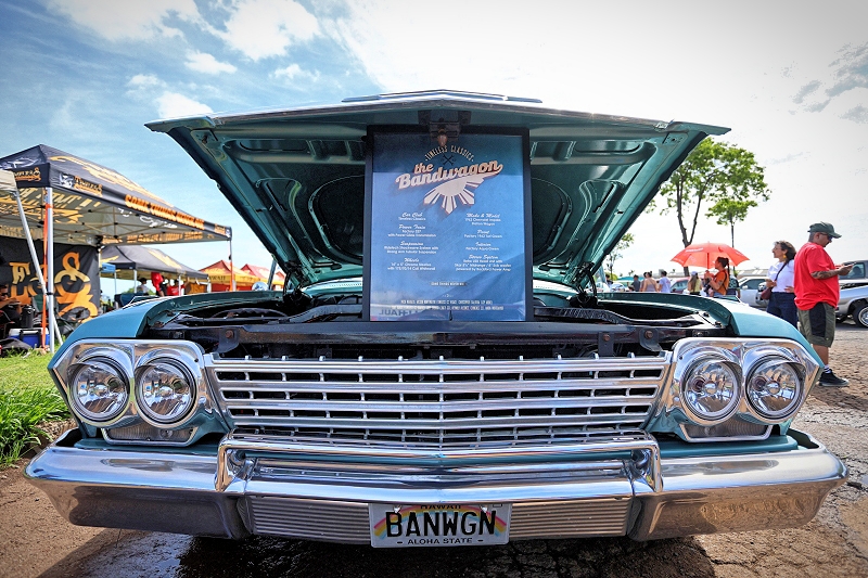 Tomas Velasco’s “The Blue Print” representing Unity Car Club getting some air time at Supremacy Hawaii’s 27th Annual Food Drive and Show & Shine Street Hop