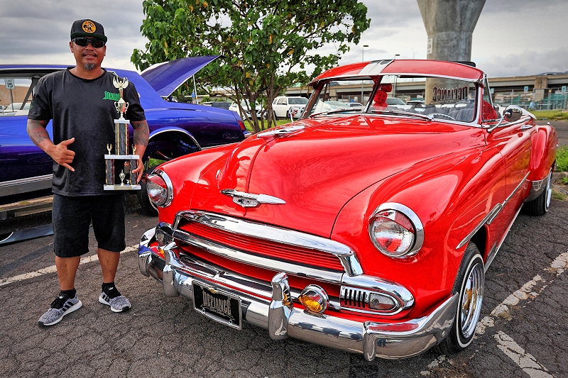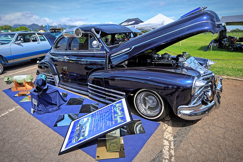 Laying low within Good Times Car Club Hawaii Chapter’s lineup was Alan Feliciano Jr.’s 1948 Chevrolet Fleetmaster Coupe as pictured above and below. Congratulations with taking home “1st Place Bomb Class” and “Best Of Show” Alan