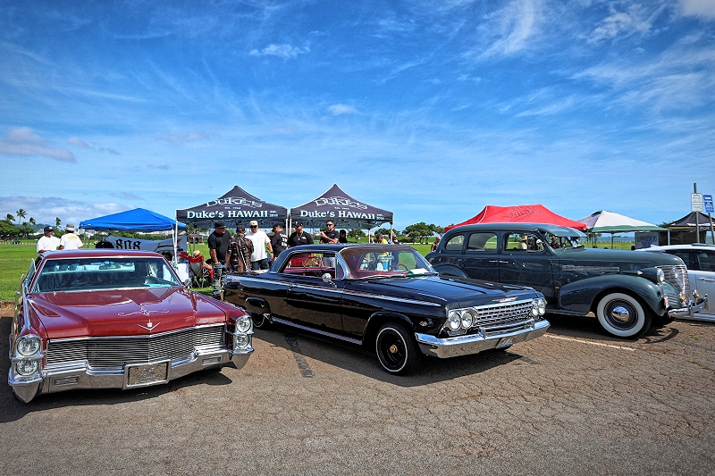 Dukes Car Club Hawaii Chapter rolled in and represented with a host of lowriders under their belts