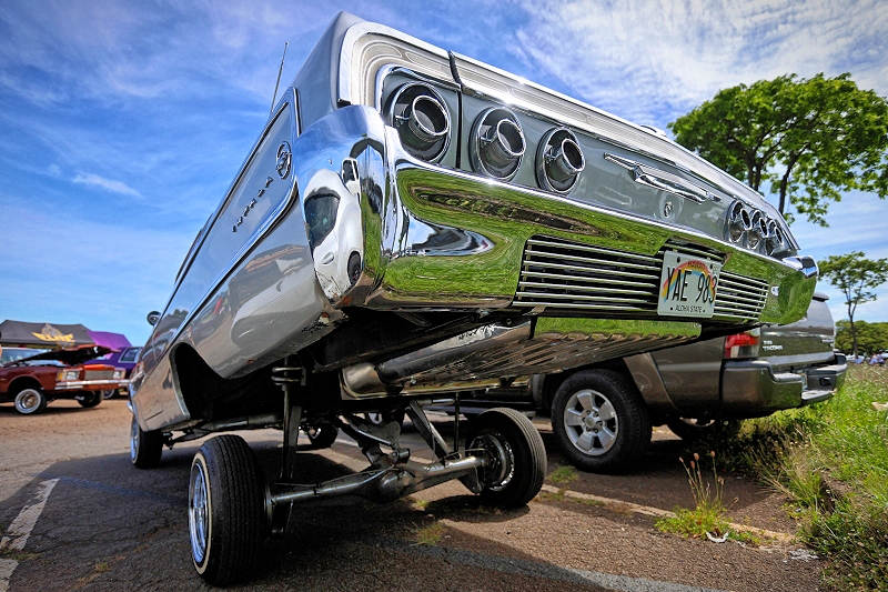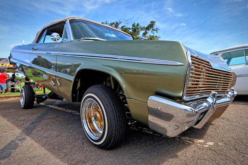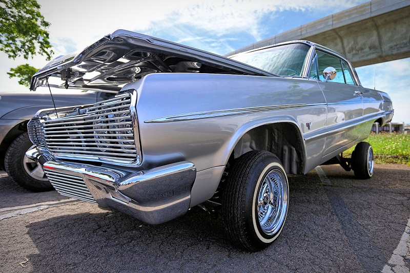 Lifted up and laying low within Outsiders Car Club’s lineup was lowriding couple Willy and Cordula Diaz with their 1979 Chevrolet Monte Carlo pictured above and 1964 Chevrolet Impala pictured below