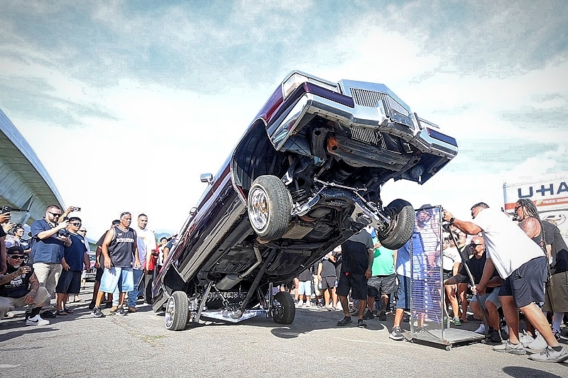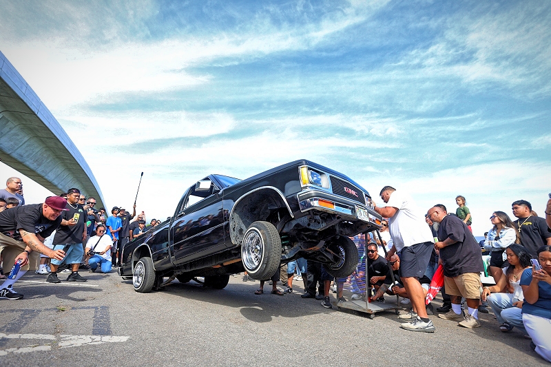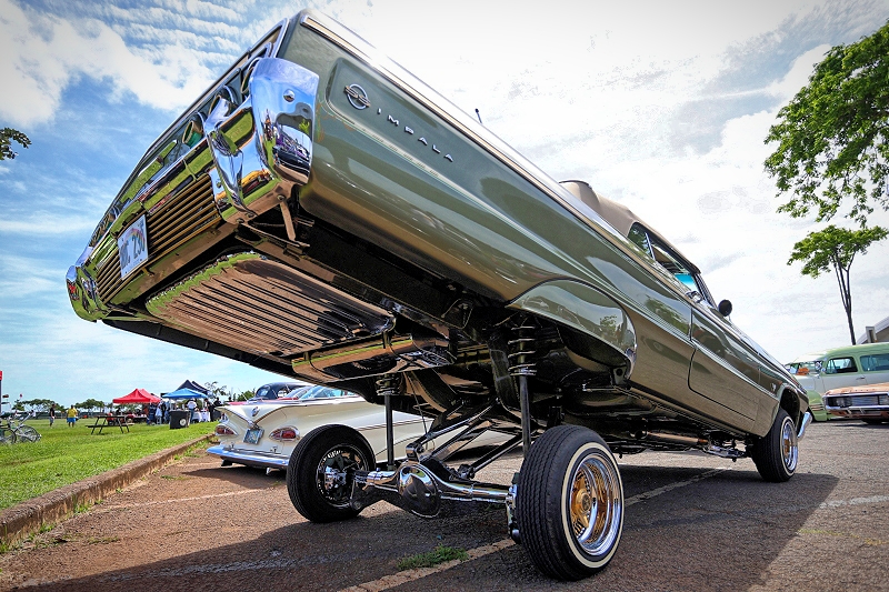 Junior Puma representing Tru Rydaz Car Club getting some major air time with his Radical Class G Body at Supremacy Hawaii’s 27th Annual Food Drive and Show & Shine Street Hop