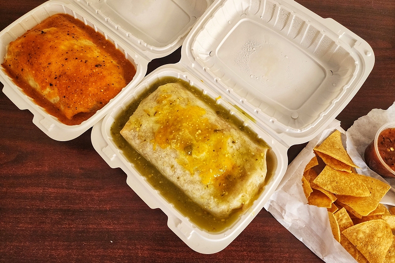 Pictured above and below are (2) orders of their Super Chaparros Burrito. Their Super Chaparros Burrito consists of a flour tortilla filled with rice, beans, filling of your choice, cheese, shredded lettuce, guacamole, pico de gallo, and sour cream. Green and red sauce were added at an additional cost for a “wet” style burrito