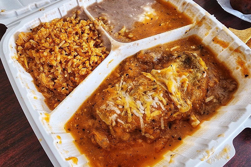 Pictured above and below is an order of their Chile Relleno. Their Chile Relleno consisted of a roasted Anaheim pepper stuffed with jack cheese, hand dipped, and fried in a fluffy egg batter topped with red sauce. Verdict: (5) out of (5) Shakas