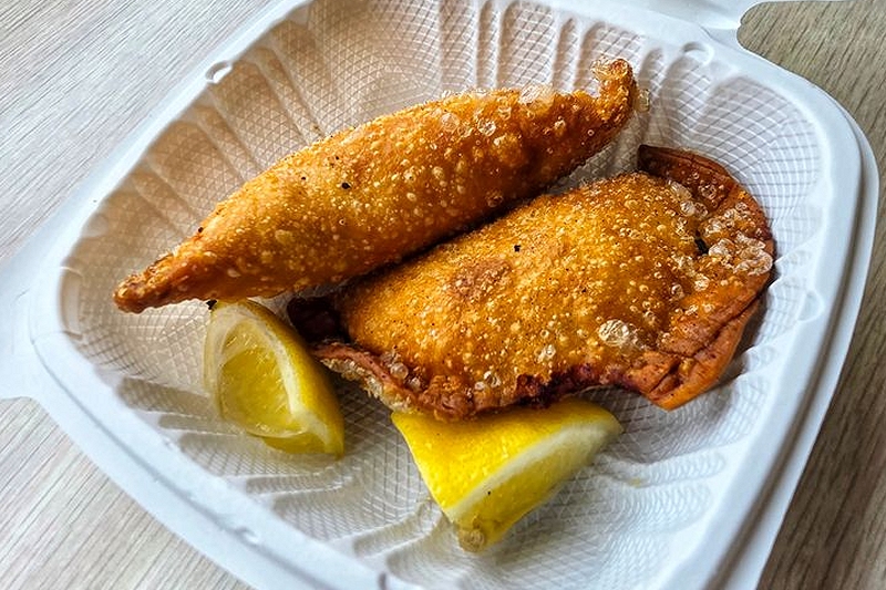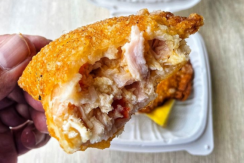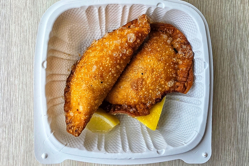 Pictured above and below is an order of their Chicken Empanadas. Verdict: (4) out of (5) Shakas